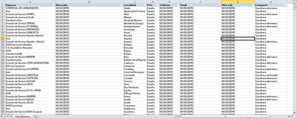 Completa Base de datos de 5870 Gasolineras (Estaciones de Servicio) de España, organizada en formato Microsoft Excel, con todos los datos de contacto.
