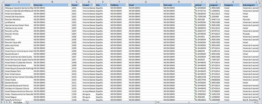 Completa Base de datos de 5600 Hoteles de España, organizada en formato Microsoft Excel, con todos los datos de contacto.