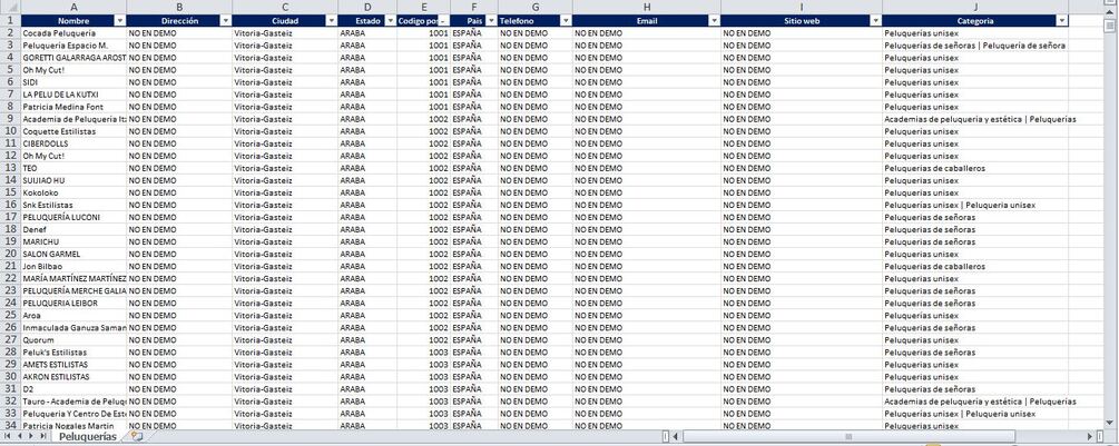 Completa Base de datos de 14.290 Peluquerías de España, organizada en formato Microsoft Excel, con todos los datos de contacto.